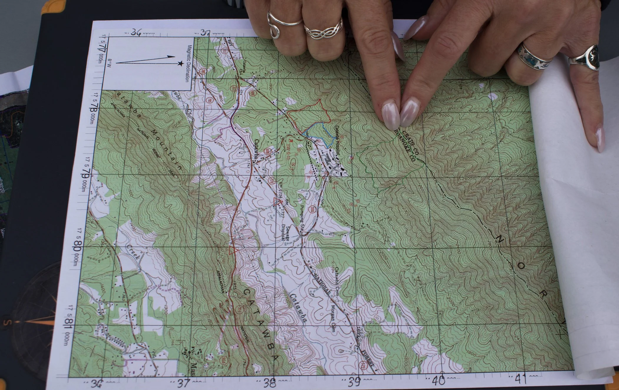 Sampson points to the edge of one of the sectors bordering two counties, Craig CO and Roanoke CO. Sampson and the team use this map to trace their steps to track down missing persons.