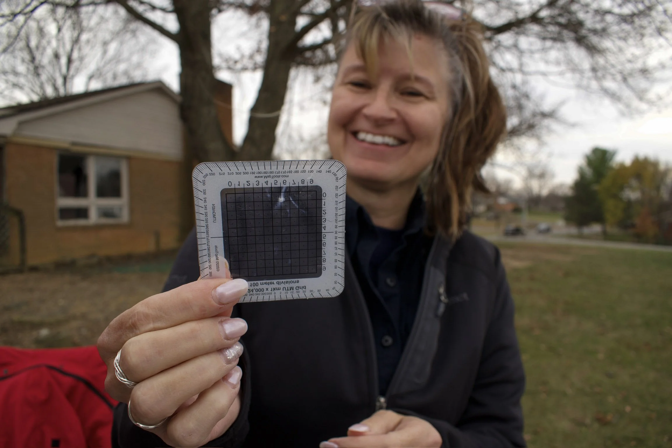 Sampson holds a chewed up Universal Transverse Mercator (UTM) Grid Square. Each small square is a hundred meters, which covers about 2.5 acres of land. The SAR (Search and Rescue) squad uses it to measure distances around certain areas around the map, to ensure no location is missed or repeated for an efficient search.